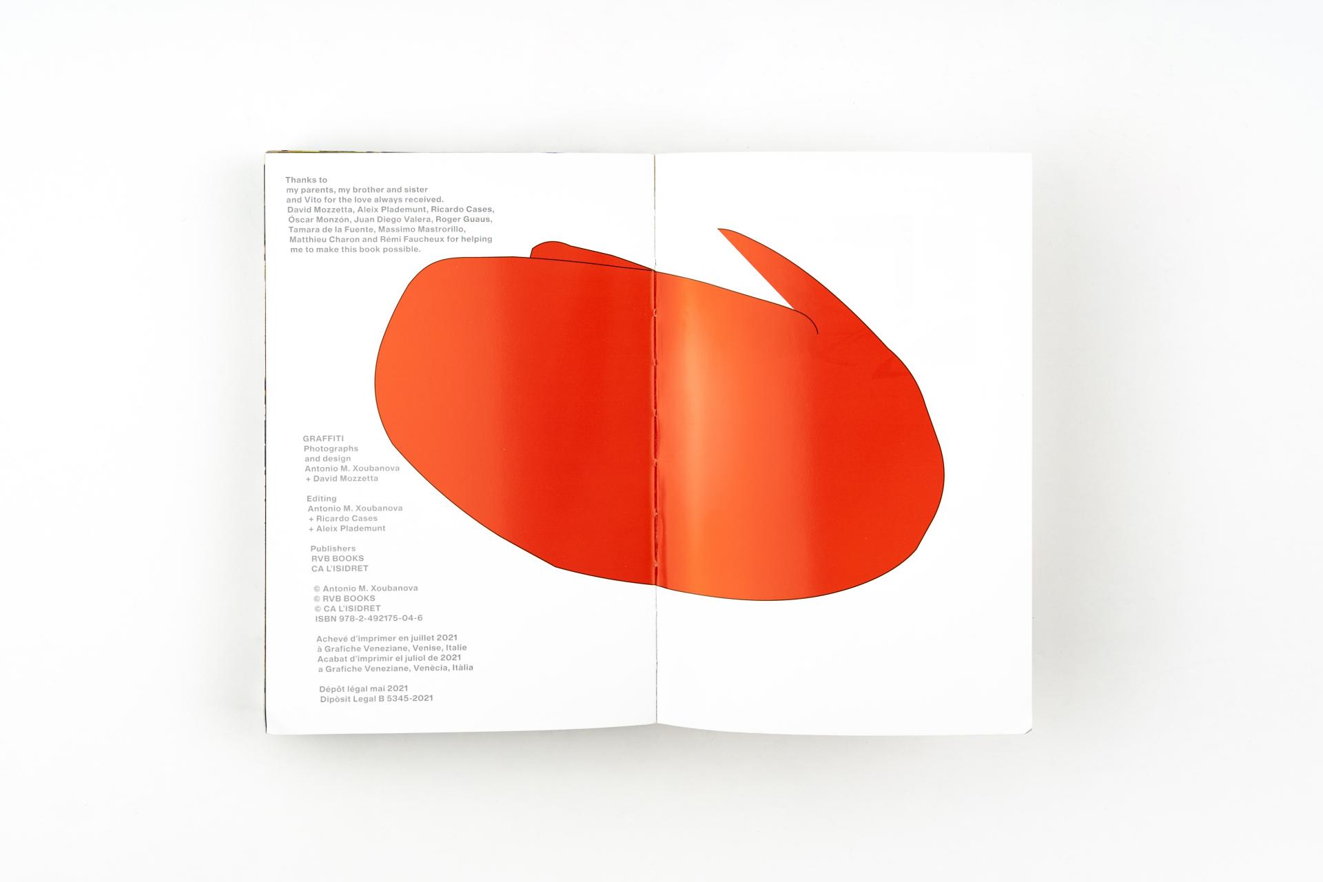 Xoubanova’s book «Graffiti» evokes the urban artistic movement that appeared in the 1970s in New York, renowned for its egocentric and identity-affirming dimension. It is the act of marking public space in the city with one’s name, of repeating one’s tag from street to street, of declaring one’s existence that interests Xoubanova here. In this phenomenon he sees a parallel with current social media practices and contemporary advertising discourse that he has been studying for a long time. Xoubanova devoted four years to building this hybrid body of photographic work, which brings together images alluding to a range of subjects, from communication and nature to social networking. The sequence of images illustrates and organizes the multiplicity and redundancy of an ever more vital affirmation of self (whether individual or collective)in the book shape. By getting over the rules (no cover, no appearing binding, unstructured pages layout) the book echoing to the uses of Graffiti. This leading to an object qualified as baroque.