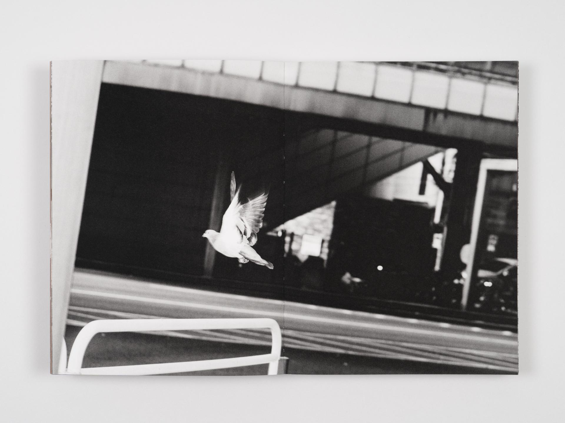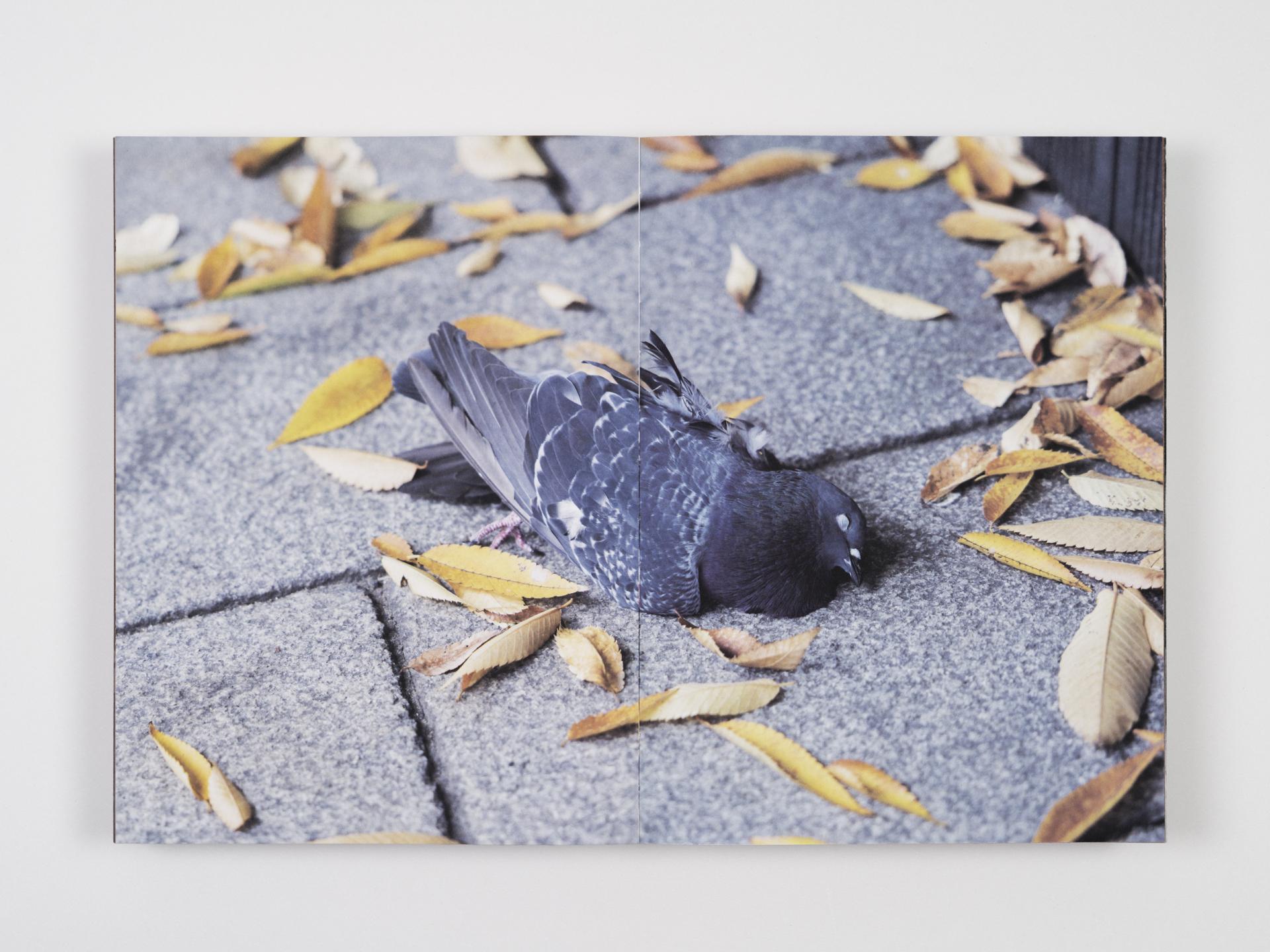 모두 펼치면 양면 포스터가 되는 싸개지 아래, 인간과 비둘기가 본표지 양면에 망점으로 새겨져 있다.