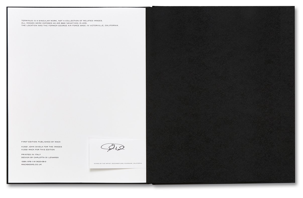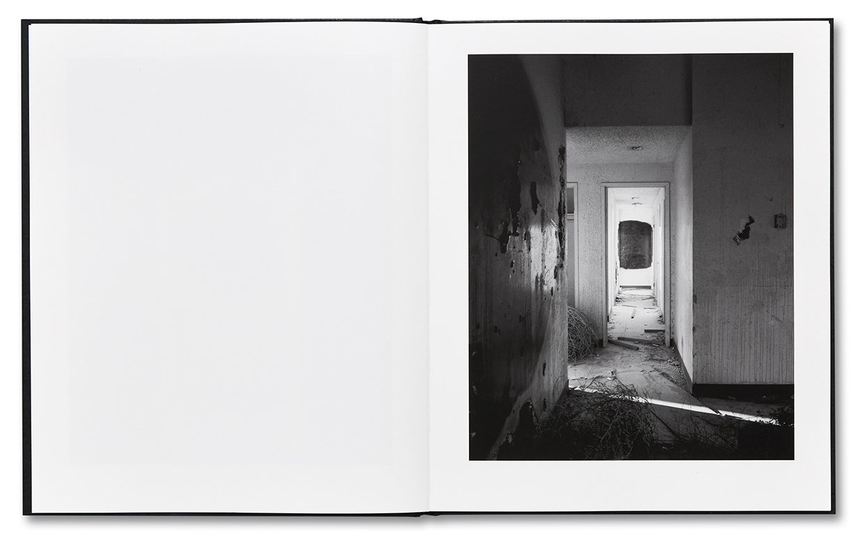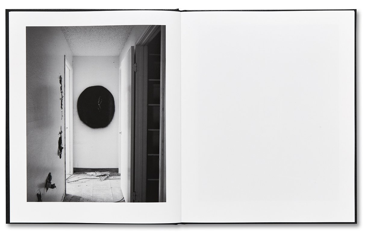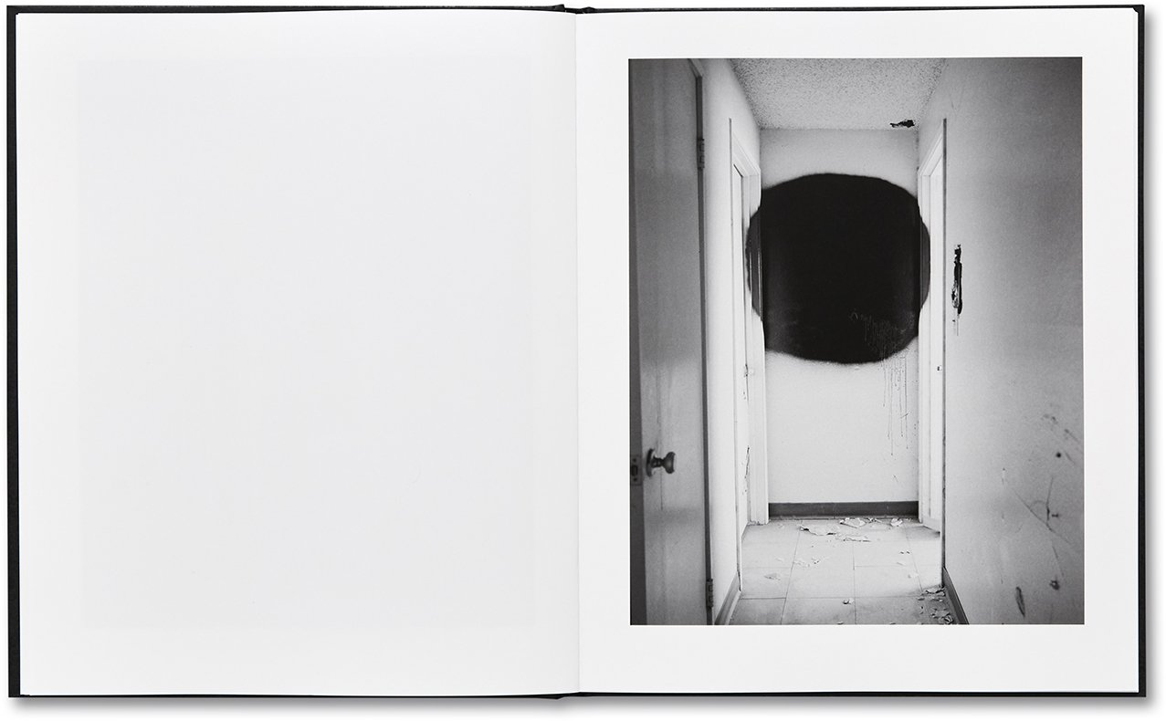 Since 2015, John Divola has been making photographic projects in an abandoned air force housing complex in Victorville, California. By intervening in the buildings’ disused interiors with spray paint then photographing the modified scenes, Divola creates work that sits at an intriguing juncture of photography, sculpture, and installation. The images in Terminus gaze down derelict hallways towards dark shapes which Divola has painted at their ends. Through layers of paint, dust, and plaster, they exert an unmistakable pull on the viewer, at once suggesting the deterministic forces of fate and the rupturing possibility of escape. Arranging and juxtaposing theses images within the book as a considered object, the artist leads the viewer on a stochastic and entrancing traverse through the abandoned compounds.
